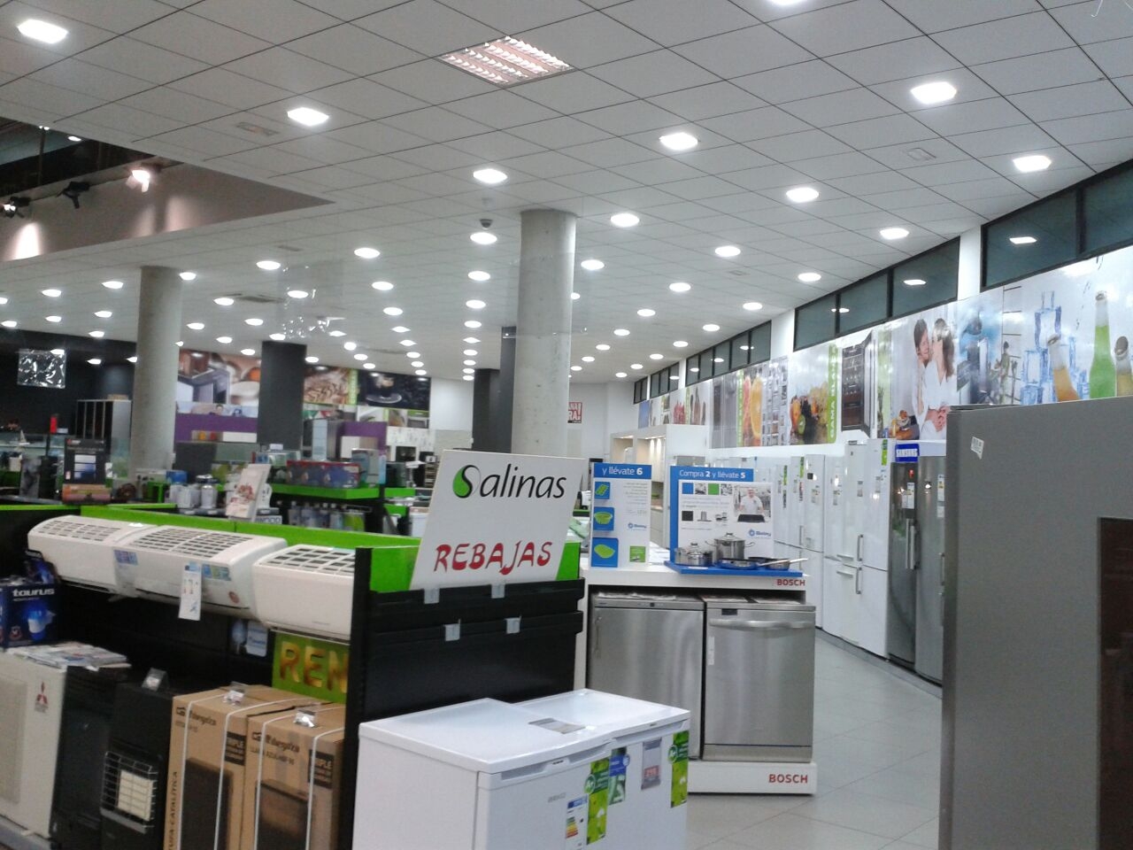 Cambiamos la iluminación de la tienda de electrodomésticos Milar Salinas, en Granada. El resultado lo podéis ver, una tienda con una imagen nueva, radiante.